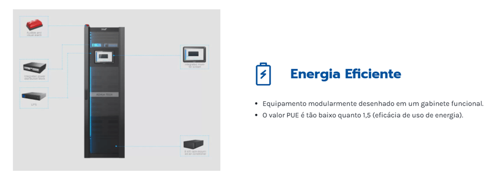 Para atender às exigências dos data centers de ponta por “baixa latência, alta largura de banda, localização e computação em tempo real”, a Kehua lançou o data center modular “Wise-S” da série WiseMDC. O design modular integra os sistemas de energia e distribuição, refrigeração, gabinetes, combate a incêndio e monitoramento, economizando espaço nos gabinetes e permitindo a instalação de servidores, KVMs, roteadores, switches e outros equipamentos de TI dentro dos gabinetes. Além disso, o equipamento pode ser expandido e configurado de forma flexível de acordo com as demandas da aplicação.
